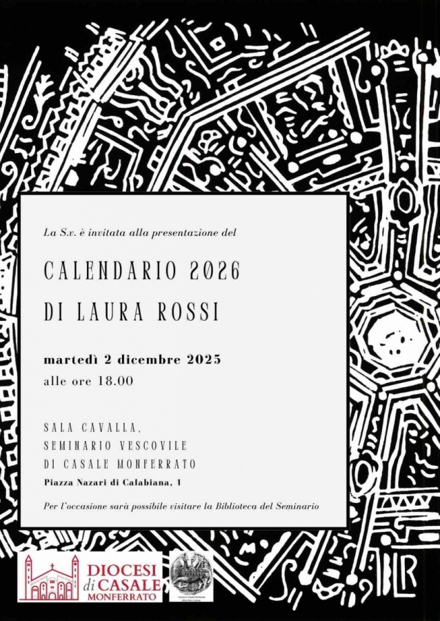 Care lettrici e lettori di Genova Reteluna l'Associazione Antipodes e l'Ufficio Beni Culturali della Diocesi di Casale Monferrato sono lieti di invitare alla presentazione del calendario 2026 realizzato dall'artista Laura Rossi, che si terrà martedì 2 dicembre alle ore 18 presso la Sala Cavalla del Seminario Vescovile (Piazza Nazari di Calabiana, 1).
